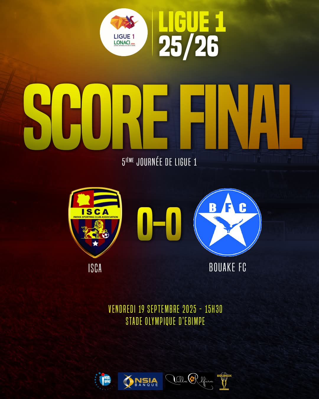 ‎A cet instant, profitant de leur supériorité numérique, les joueurs de ISCA se lancent à l’assaut des buts Bouakéens, sans succès. Au finish, le match s’achève sur le score de 0-0 au grand désarroi des supporters de ISCA qui rêvaient d’une victoire jusqu’à la dernière minute de jeu.