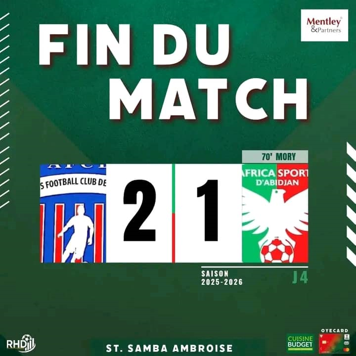 Le stade Samba Ambroise de Dimbokro a été le théâtre d’un véritable exploit ce samedi après-midi lors de la 4ᵉ journée de Ligue 2. Pour sa première saison dans l’antichambre de l’élite, l’Atlantis FC a fait tomber l’un des géants du football ivoirien, l’Africa Sports d’Abidjan, sur le score de 2-1.