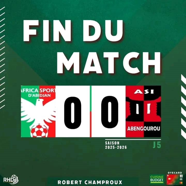 Samedi 20 septembre 2025- Stade Robert Champroux (Marcory)- Africa Sports d’Abidjan 0 vs Asi d’Abengourou 0.
