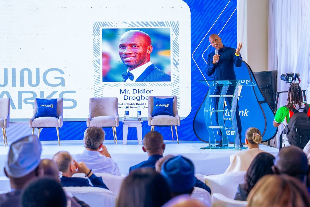 Didier Drogba intervenant lors de la cérémonie de lancement officiel de la course E1 Lagos.